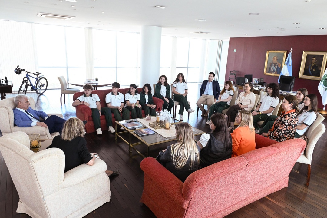 El gobernador Claudio Poggi recibió en Casa de Gobierno a once estudiantes de sexto año del Instituto Causay, que viajarán a Santiago de Chile para participar en la Feria Internacional de Ciencias. Los jóvenes presentarán allí su proyecto «CardioInsight: una mirada inteligente a la salud del corazón», con el que obtuvieron el primer lugar en la Feria Nacional de Educación, Artes, Ciencias y Tecnología realizada en Misiones.