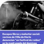 Entre las 6 y las 8 de la mañana, los habitantes de distintos sectores de Villa de Merlo se vieron afectados por el paso de motos y al menos dos autos con escapes libres o modificados. El estruendo prolongado generó malestar entre los residentes que descansaban en plena madrugada. Vecinos del centro y barrios periféricos describieron cómo vehículos permanecían minutos en un lugar, aceleraban para generar ruido y luego se trasladaban a otra arteria.