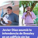 El flamante intendente de Beazley, Javier Díaz, asumió su cargo este miércoles en la plaza del pueblo, un acto que se convirtió en una cruda ilustración del estado financiero y administrativo precario en el cual se encuentra la Municipalidad. La falta de energía eléctrica desde hacía meses obliga al gobierno a usar la electricidad de un vecino mediante alargues para funcionar.